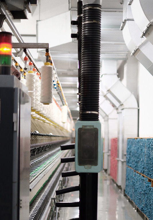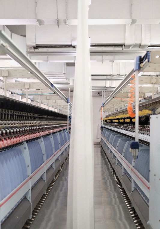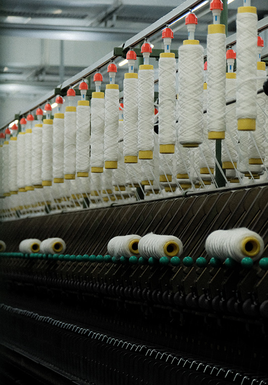 control from raw materials to finished yarn.
